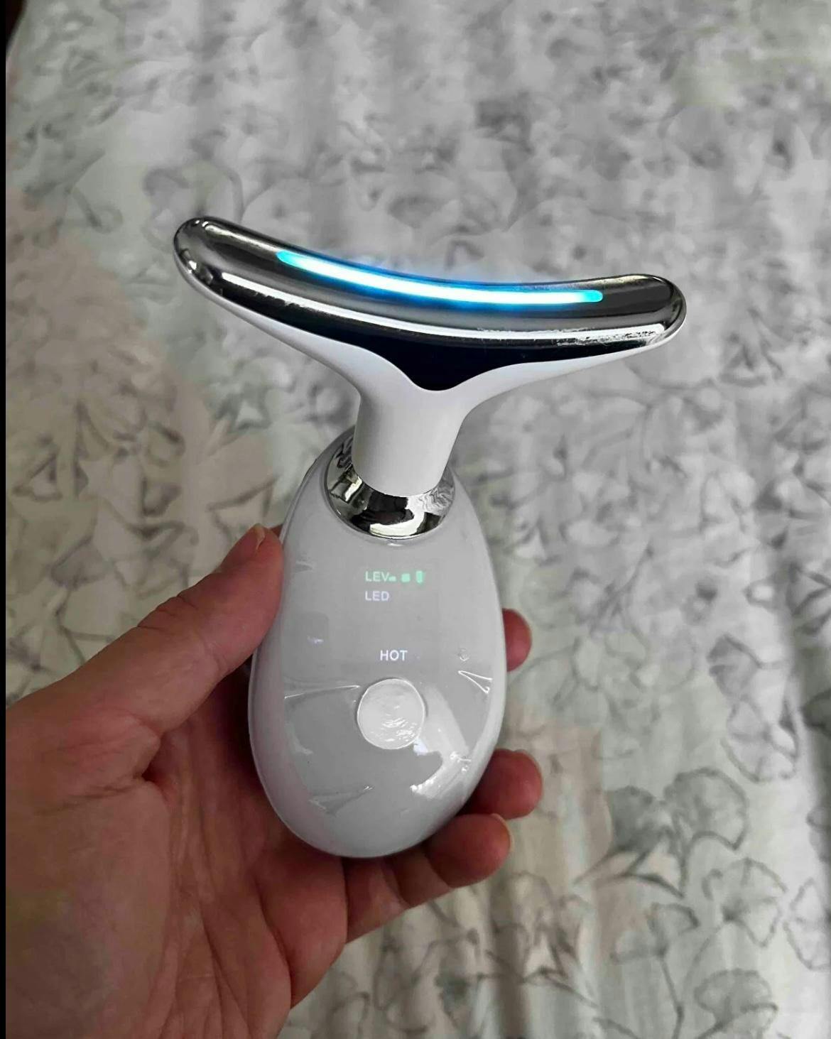 V-Lift'in ergonomik başlığı, boyun ve yüz kavislerinize tam oturur. 45°C akıllı sıcaklık ve yüksek frekanslı titreşim ile kollajen üretimini tetikler.